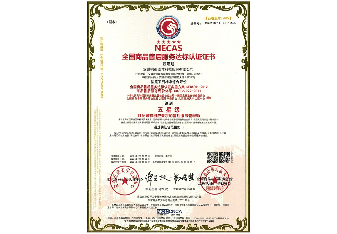 售后服務達標認證證書