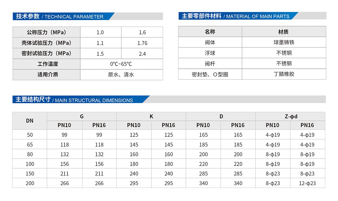 5、浮球、閥桿采用不銹鋼制成,強度高,耐磨耐腐蝕性強,使用壽命長。